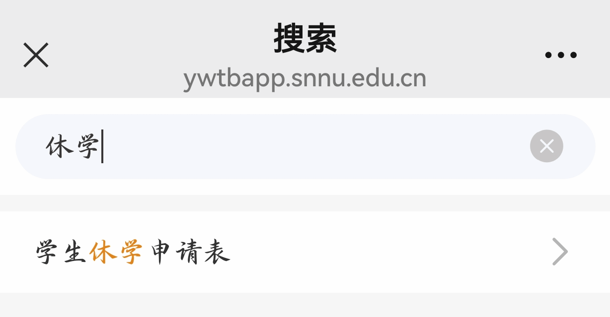 ② 在搜索栏中搜索“休学”事项,即可在线一键办理。